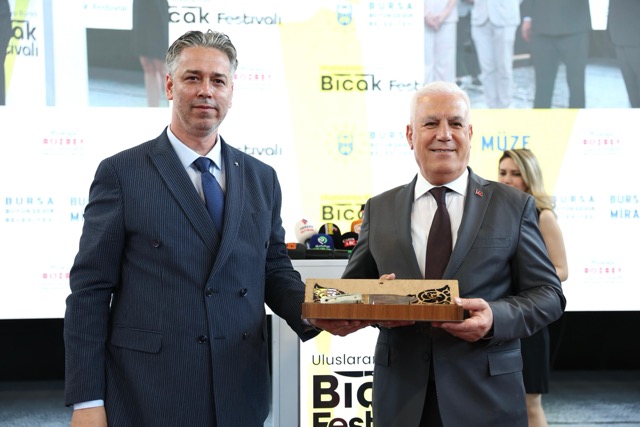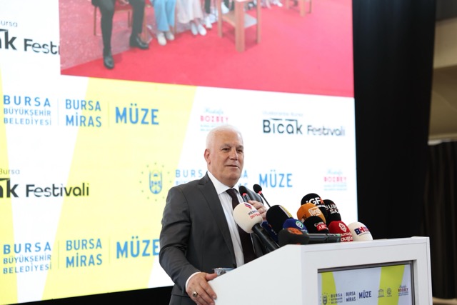 Bursa Büyükşehir Belediye Başkanı Mustafa Bozbey, Türkiye’de bıçakçılığın Bursa’dan geliştiğini ve Bursa’nın bu konuda çok fazla kültürel birikimi bulunduğunu anlattı. Bu özelliğini Bursa’ya yeniden kazandırmanın çabası içerisinde olduklarını söyleyen Başkan Bozbey; Bursa’nın usta ellerin maharetini, tecrübesini ve ince işçiliğini, bıçağın çeliğinde buluşturan bir kent olduğunu belirtti. Asırlar boyu kentin çarşılarında, atölyelerinde yankılanan çekiç seslerinin bugün festivalde yeniden hayat bulduğunu ifade eden Başkan Bozbey, “Bursa olarak bu yıl Uluslararası Dünya Bıçak Üretici Başkentleri Birliği’ne resmen üye olduğumuzu gururla paylaşmak isterim. Geçtiğimiz ekim ayında Arjantin’de yapılan toplantıya katılarak kentimizin bıçakçılık mirasını dünya şehirleriyle buluşturduk. Burada bir müjde daha vermek istiyorum. 2027 yılında, Uluslararası Dünya Bıçak Üretici Başkentleri Birliği Buluşması’na Bursamız ev sahipliği yapacak. Bu önemli buluşmayla birlikte Bursamızın köklü bıçak geleneğini sürdüren ustaları ile dünyanın dört bir yanından gelen bıçak ustaları aynı çatı altında buluşacak. Köklü kültürümüz olan bıçakçılığı tekrar Bursa’da canlandırma ve gelecek kuşaklara aktarma sorumluluğuna sahibiz” dedi.