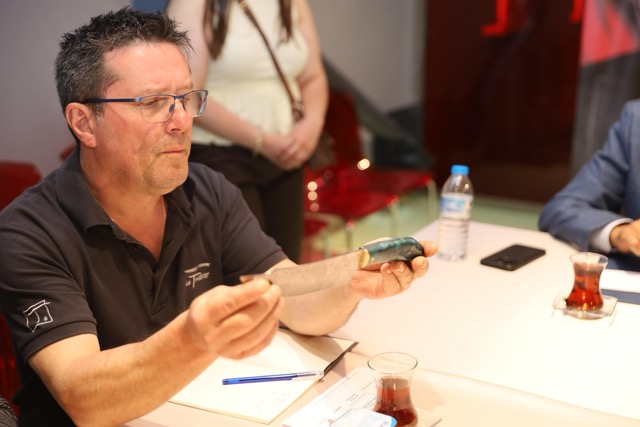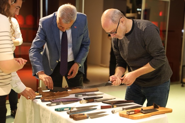 Konuşmaların ardından Başkan Mustafa Bozbey tarafından günün anısına Fatih Adliğ ve Stéphane Rodier’e Bursa Bıçağı hediye edildi.
