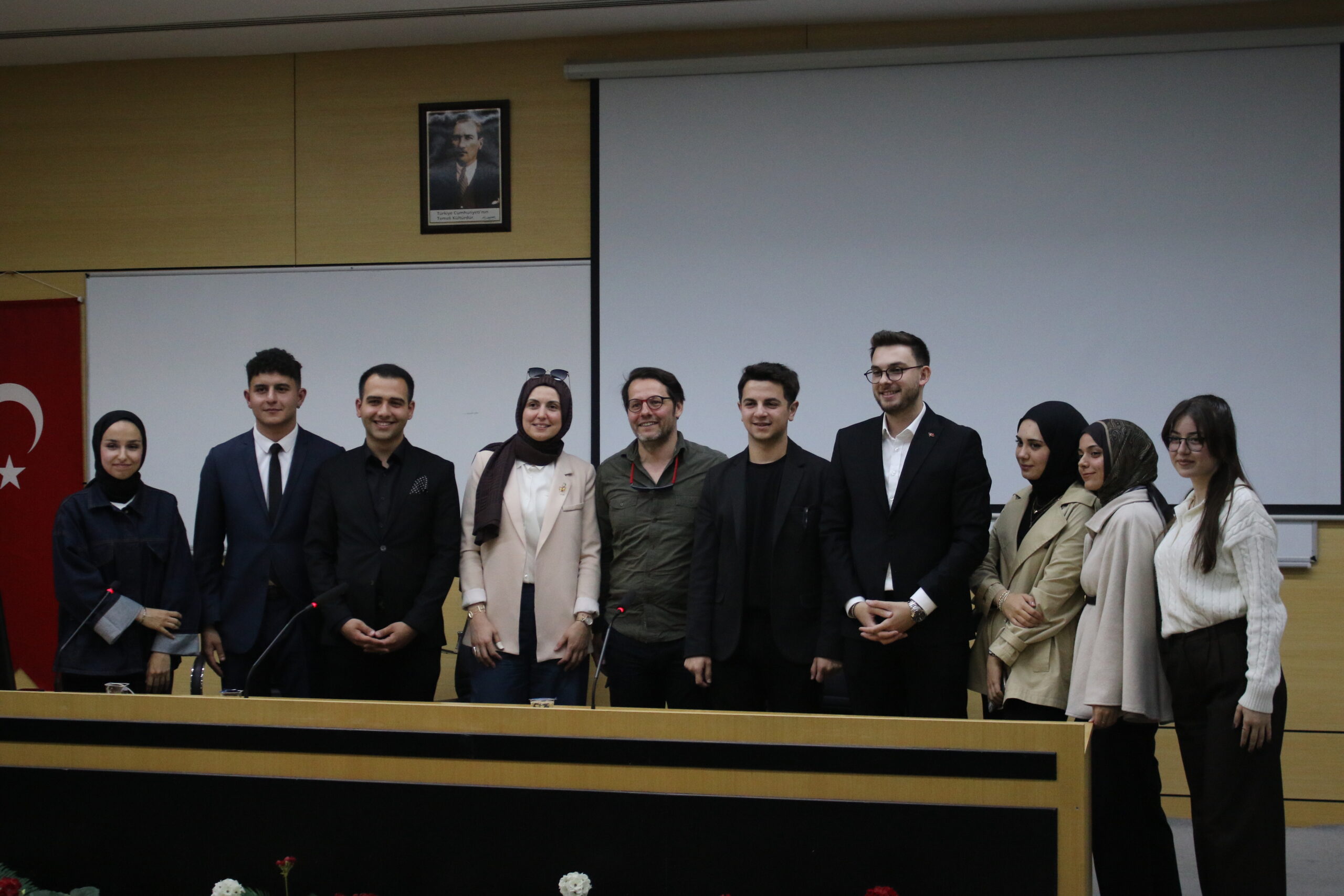 SAKARYA – Sakarya Üniversitesinde, Gazetecilik Topluluğu, Medya Tasarım Kulübü ve Sakarya Kent Konseyi Gençlik Meclisi iş birliğiyle düzenlenen İletişim Seminerinde TRT spikeri Tolga Avcı, TRT yapımcısı Zeynep Matur ve Sakarya Üniversitesi mezunu Sümeyye Gökyar öğrencilerle bir araya geldi.